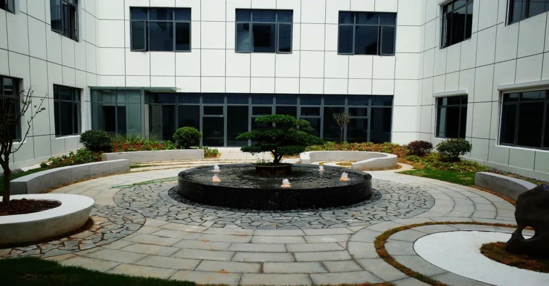 二樓設空中花園,采光井的位置人性化設置了綠化和噴水池等景點,以及供休息的座椅等,使產婦和患兒有娛樂、休息的空間。